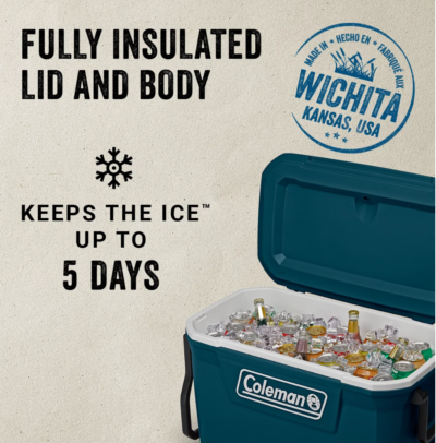 Inspirados en nuestras raíces de Wichita y las personas que trabajan allí, las hieleras Coleman® 316 Series™ brindan una calidad inigualable y un legado de artesanía y aventura dondequiera que los lleve. La hielera con ruedas de 62 cuartos de la serie 316 de Coleman tiene todas las características que necesitará para actividades al aire libre, desde paseos con amigos hasta viajes de campamento anuales. La tapa y el cuerpo completamente aislados mantienen el hielo por hasta 4 días en temperaturas de hasta 90 ° F para que pueda disfrutar de bebidas frías en el campamento después de caminar por los senderos o cocinar comidas abundantes.