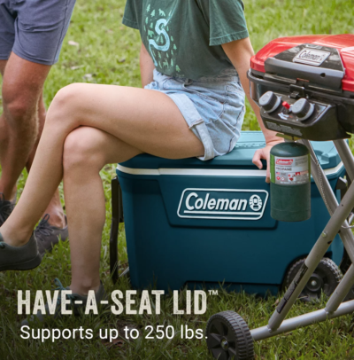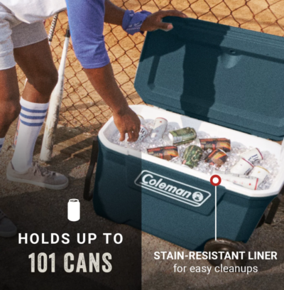 ¿Yendo a la playa? Las ruedas resistentes de 6 pulgadas y las manijas telescópicas y de bolsillo duraderas lo ayudan a transportar una carga completa mientras busca el lugar perfecto. Las bebidas están siempre al alcance y no se derraman gracias a los portavasos moldeados en la tapa. Si más invitados pasan por la puerta trasera o hacen un picnic, tienes un asiento adicional con Have-A-Seat lid™ que admite hasta 250 lb. La gran capacidad se adapta a hasta 101 latas, por lo que tendrá muchas bebidas para que todos se reúnan e intercambien historias.