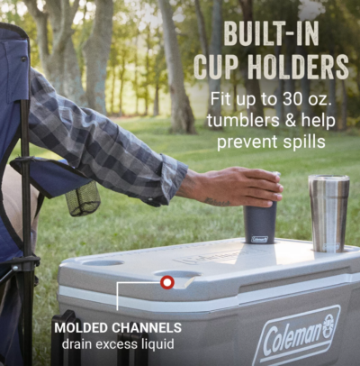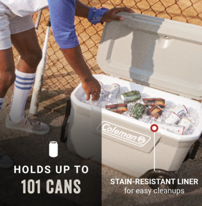 ¿Yendo a la playa? Las ruedas resistentes de 6 pulgadas y las manijas telescópicas y de bolsillo duraderas lo ayudan a transportar una carga completa mientras busca el lugar perfecto. Las bebidas están siempre al alcance y no se derraman gracias a los portavasos moldeados en la tapa. Si más invitados pasan por la puerta trasera o hacen un picnic, tienes un asiento adicional con Have-A-Seat lid™ que admite hasta 250 lb. La gran capacidad se adapta a hasta 101 latas, por lo que tendrá muchas bebidas para que todos se reúnan e intercambien historias.